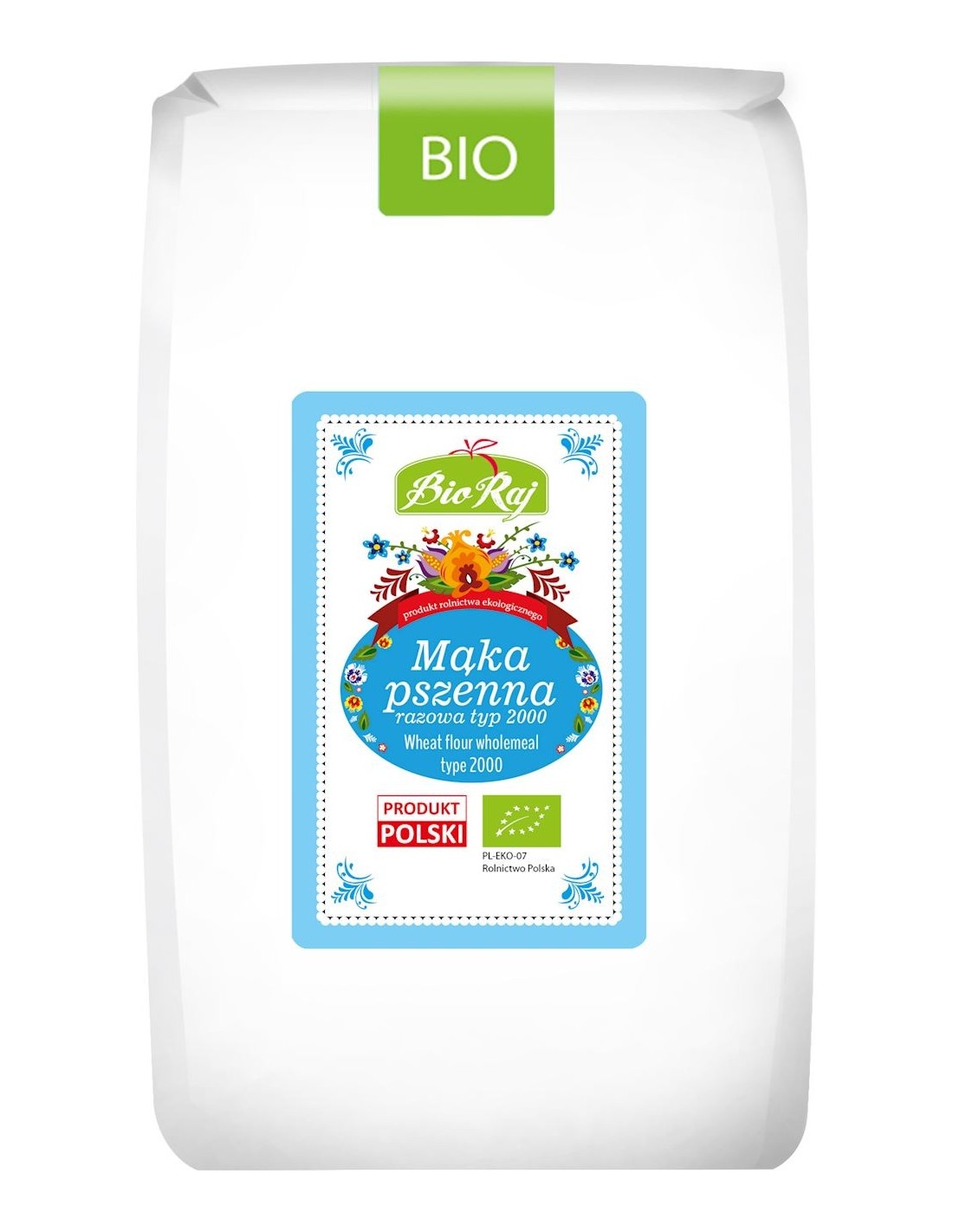 Ekologiczna mąka pszenna typ 2000 jest mąką pełnoziarnistą, tzn. pochodzi z pełnego przemiału całego ziarna pszenicy zwyczajnej. Nadaje wytrawny smak, stąd doskonała do wypieku pełnoziarnistego pieczywa, do zagęszczania pasztetów warzywnych i strączkowych oraz do wyrobu makaronu razowego.