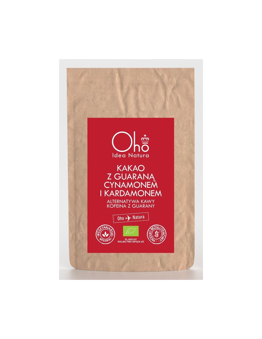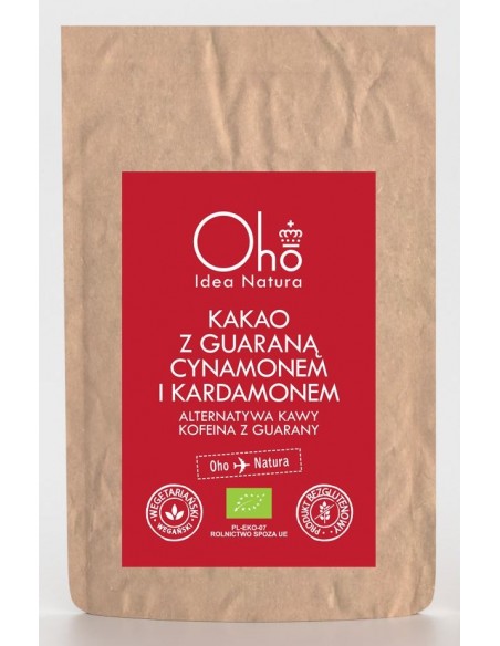 kakao o obniżonej zawartości tłuszczu* 40%, cukier kokosowy*, guarana* 8%,
