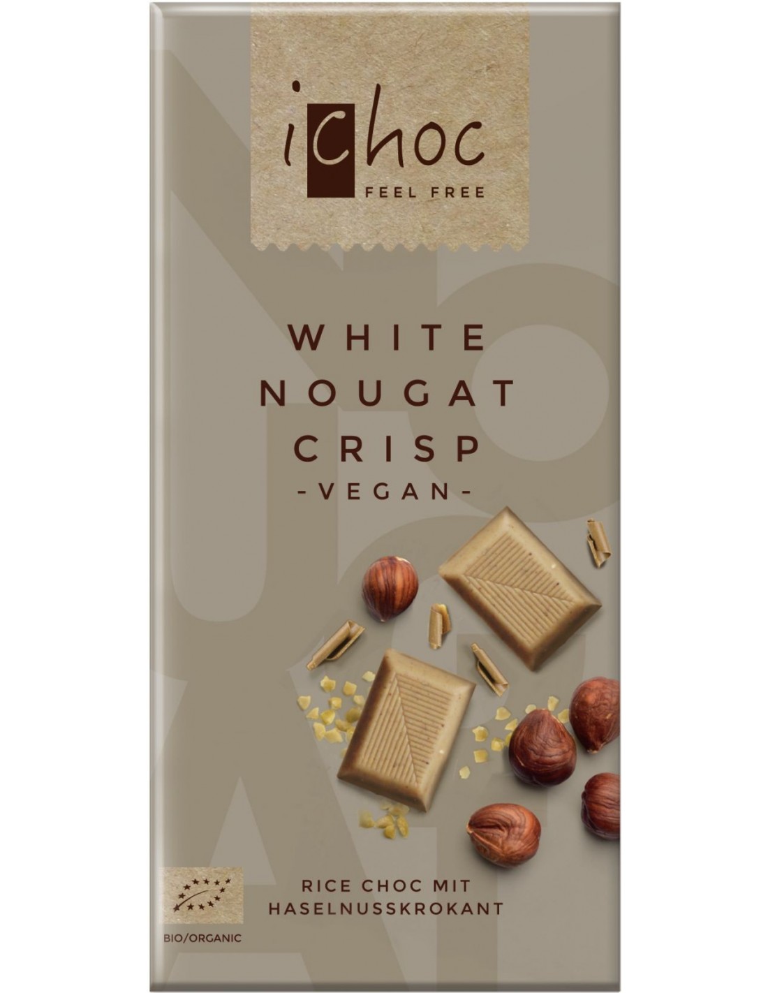 ICHOC TABLICZKA BIAŁA NUGATOWA Z ORZECHAMI LASKOWYMI (NA NAPOJU RYŻOWYM) BIO 80 g - ICHOC (VIVANI)