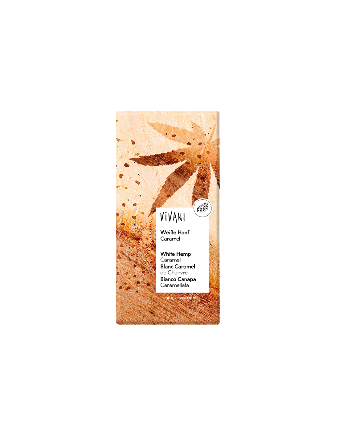 CZEKOLADA BIAŁA WANILIOWA Z KARMELIZOWANYMI NASIONAMI KONOPI BIO 80 g - VIVANI