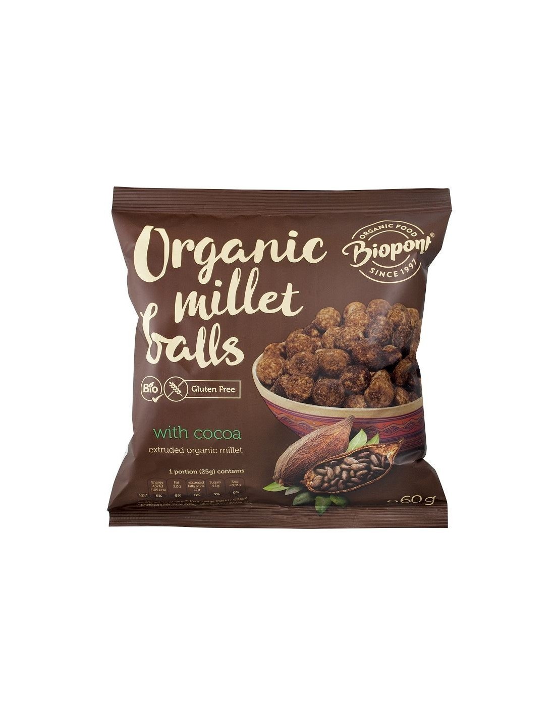 atmosferze ochronnej. Ekstrudowane kulki jaglane o smaku kakaowym.