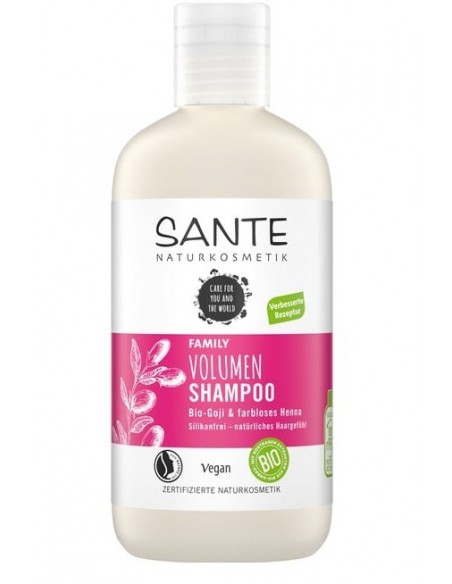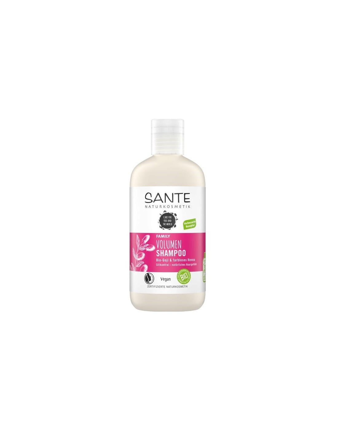 SZAMPON DO WŁOSÓW ZWIĘKSZAJĄCY OBJĘTOŚĆ JAGODY GOJI I BEZBARWNA HENNA ECO 250 ml - SANTE