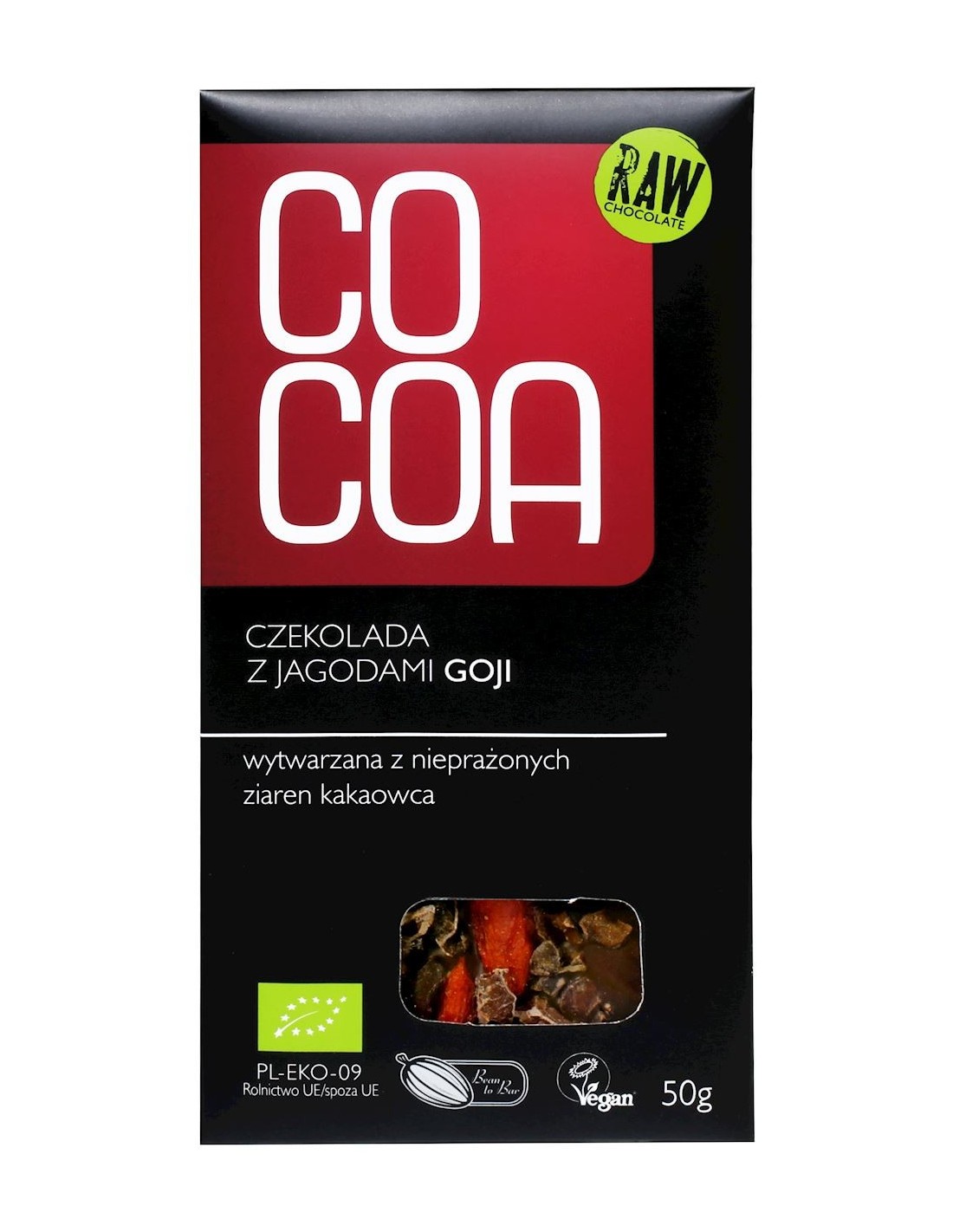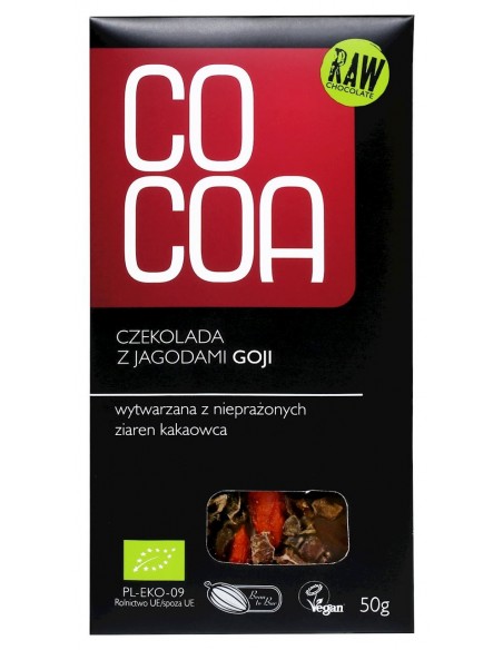 goji* (5%), kruszone ziarna kakaowca*, wanilia BOURBON* (*certyfikowany