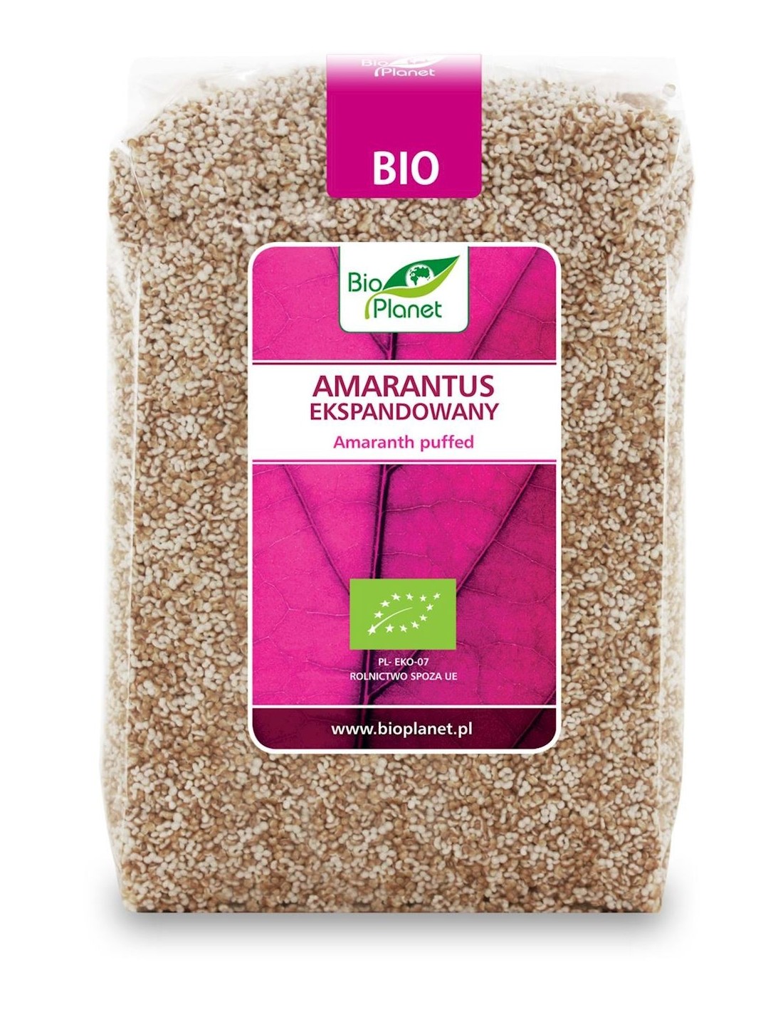 Ekologiczny amarantus jest jedną z najstarszych i najbardziej pożywnych roślin (pseudozbóż) uprawianych na świecie. Amarantus ekspandowany (popping) jest gotowym produktem do bezpośredniego spożycia. Proponujemy jako wartościowy zagęszczacz do kotletów warzywnych i strączkowych lub jako panierka, także do pieczenia ciast i chleba. Może stanowić dodatek do musli lub posypkę do deserów i sałatek.