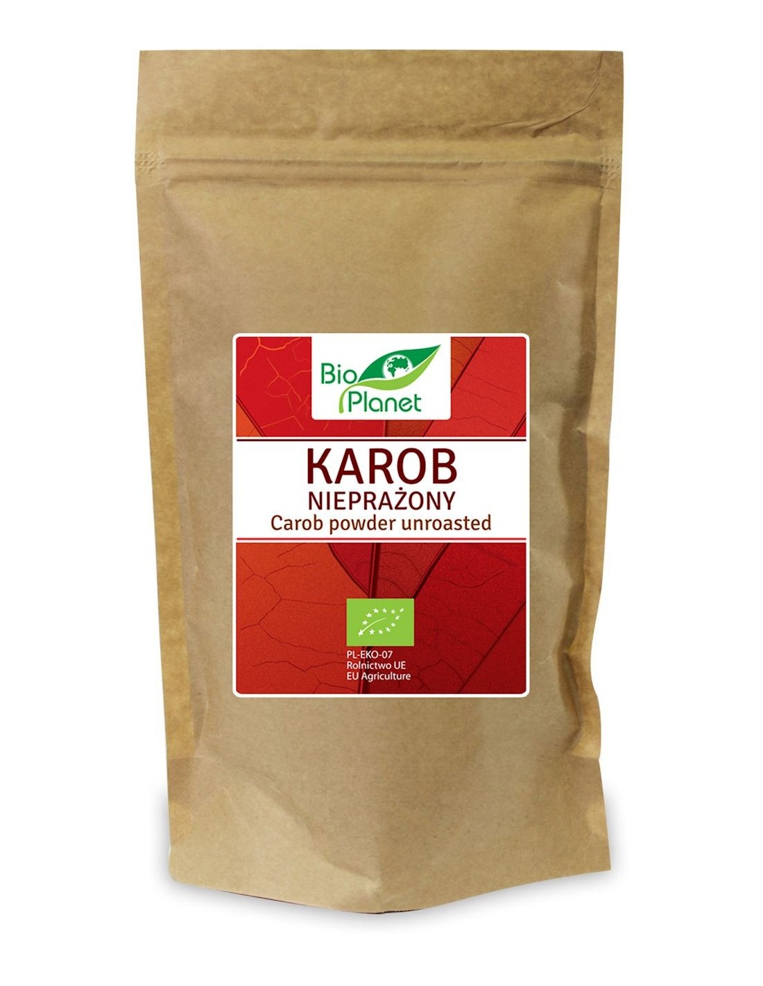 Ekologiczny karob to pozbawione nasion i zmielone strąki drzewa karobowego, zwanego szarańczynem strąkowym. Strąki szarańczynu, zwane również chlebem świętojańskim, wysuszone i zmielone mają ciemnobrązową barwę i mogą stanowić substytut tradycyjnego kakao. Karob polecamy do wszelkiego rodzaju wypieków, deserów i polew.