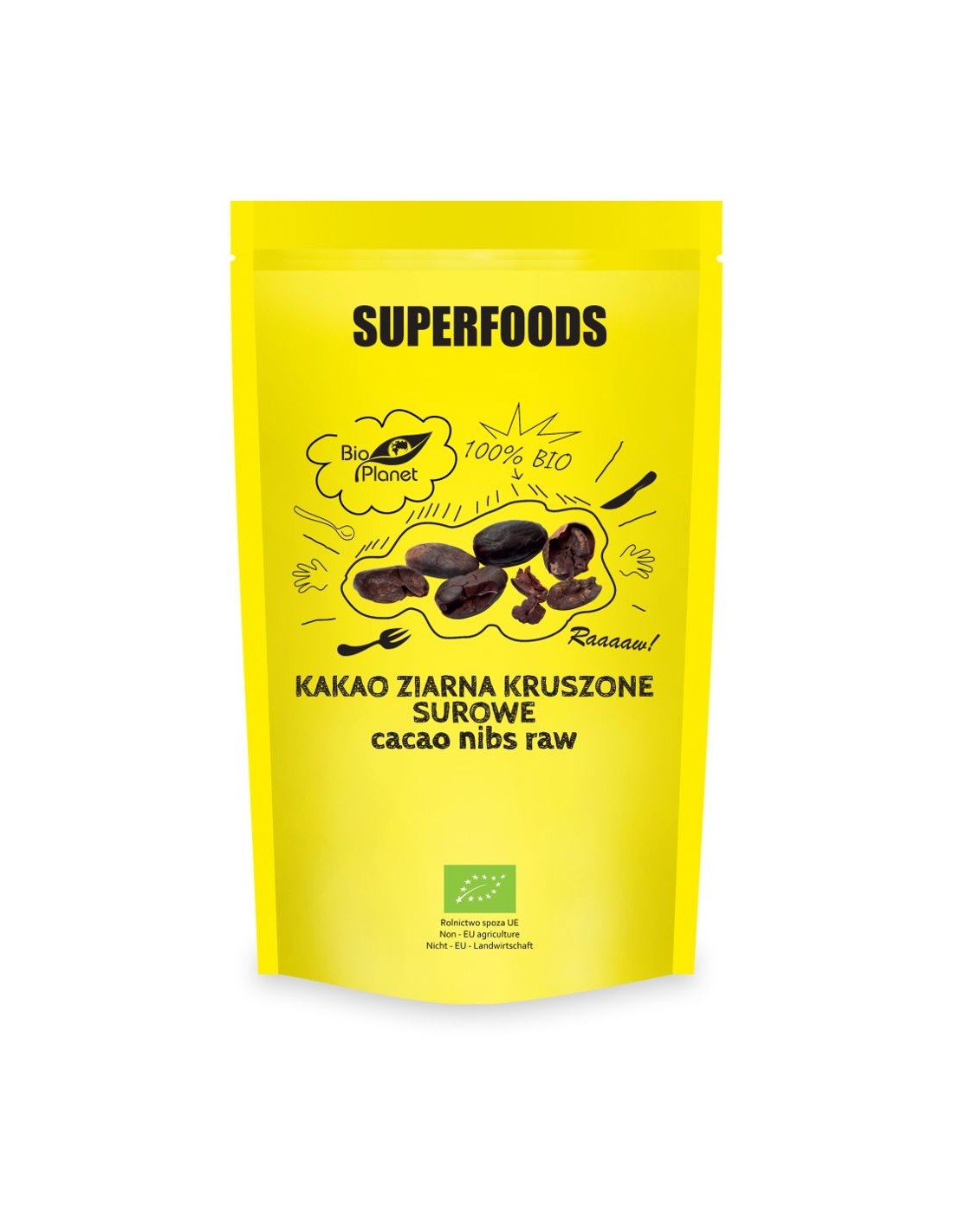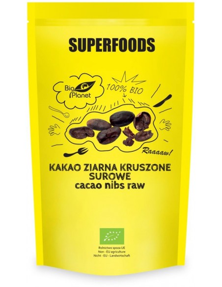 Ekologiczne surowe kruszone ziarna kakao, otrzymane z najwyższej jakości ziaren kakaowca. Charakteryzują się wytrawnym kakaowym smakiem. Przetwarzane w niskich temperaturach w celu zachowania maksymalnej ilości składników odżywczych. Stanowią podstawowy składnik czekolady. Mogą stanowić bazę dla wielu produktów czekoladowych, posypkę do lodów lub innych deserów, jak również dodatek do wszelkiego rodzaju przekąsek, koktajli, musli, ciast, a także do kawy i gorącej czekolady.