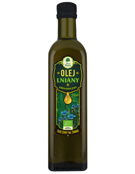 lniany tłoczony na zimno. Olej lniany polecany szczególnie jako dodatek do