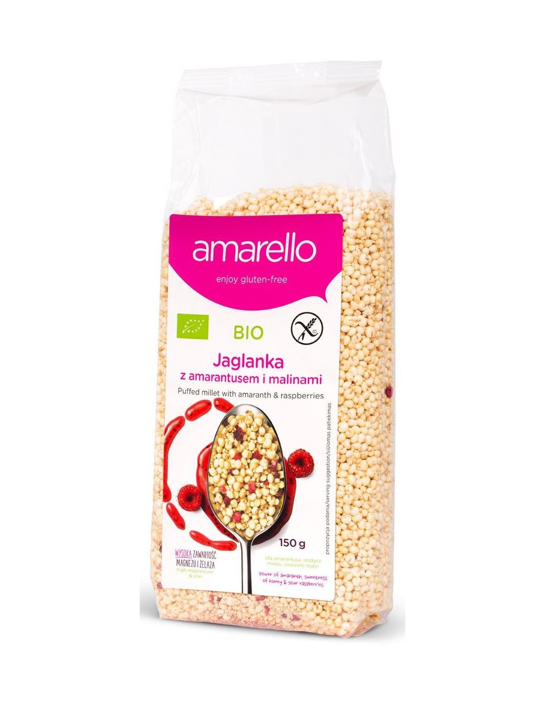JAGLANKA Z AMARANTUSEM I MALINAMI BEZGLUTENOWA BIO 150 g - AMARELLO
