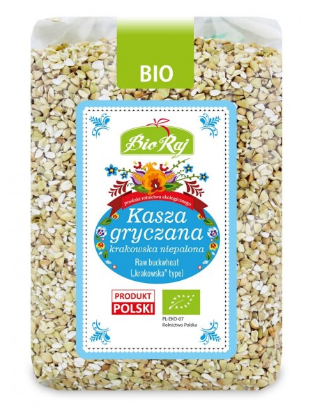 Ekologiczna kasza gryczana krakowska otrzymana jest z obłuszczonego i pokrojonego ziarna gryki niepalonej. Ma łagodny i delikatny smak. Najczęściej stosowana jako dodatek do zup, dań jednogarnkowych, pasztetów, kotletów, past do chleba, a także jako składnik obiadów w połączeniu z warzywami, czy gulaszem.