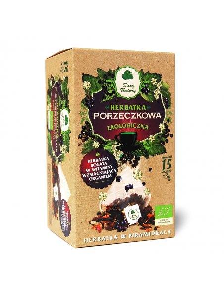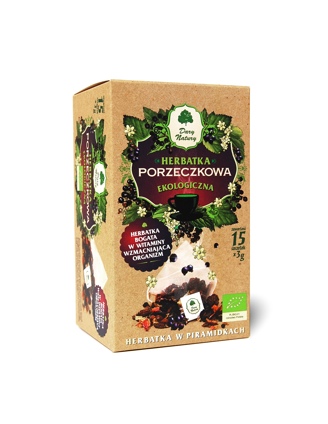 porzeczki* 50%, owoc tarniny*, aronii*, bzu czarnego*, jabłka*, liść porzeczki*