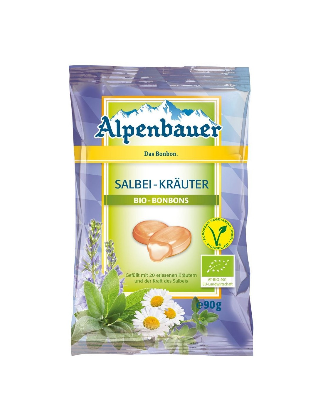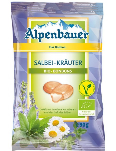 CUKIERKI Z NADZIENIEM O SMAKU ZIOŁOWYM Z SZAŁWIĄ VEGAN BIO 90 g - ALPENBAUER
