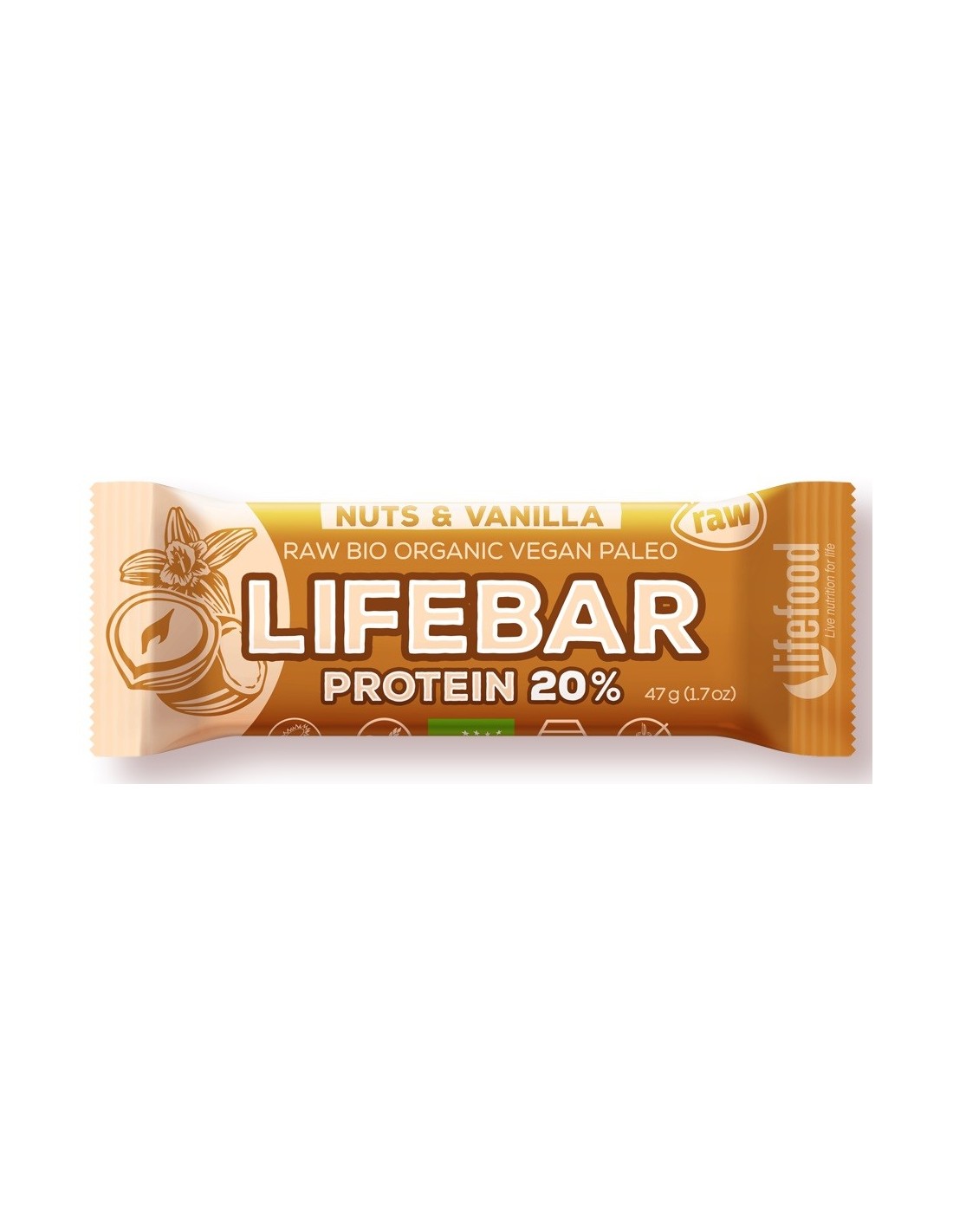 BATON PROTEINOWY Z ORZECHAMI I WANILIĄ RAW BEZGLUTENOWY BIO 47 g - LIFEFOOD