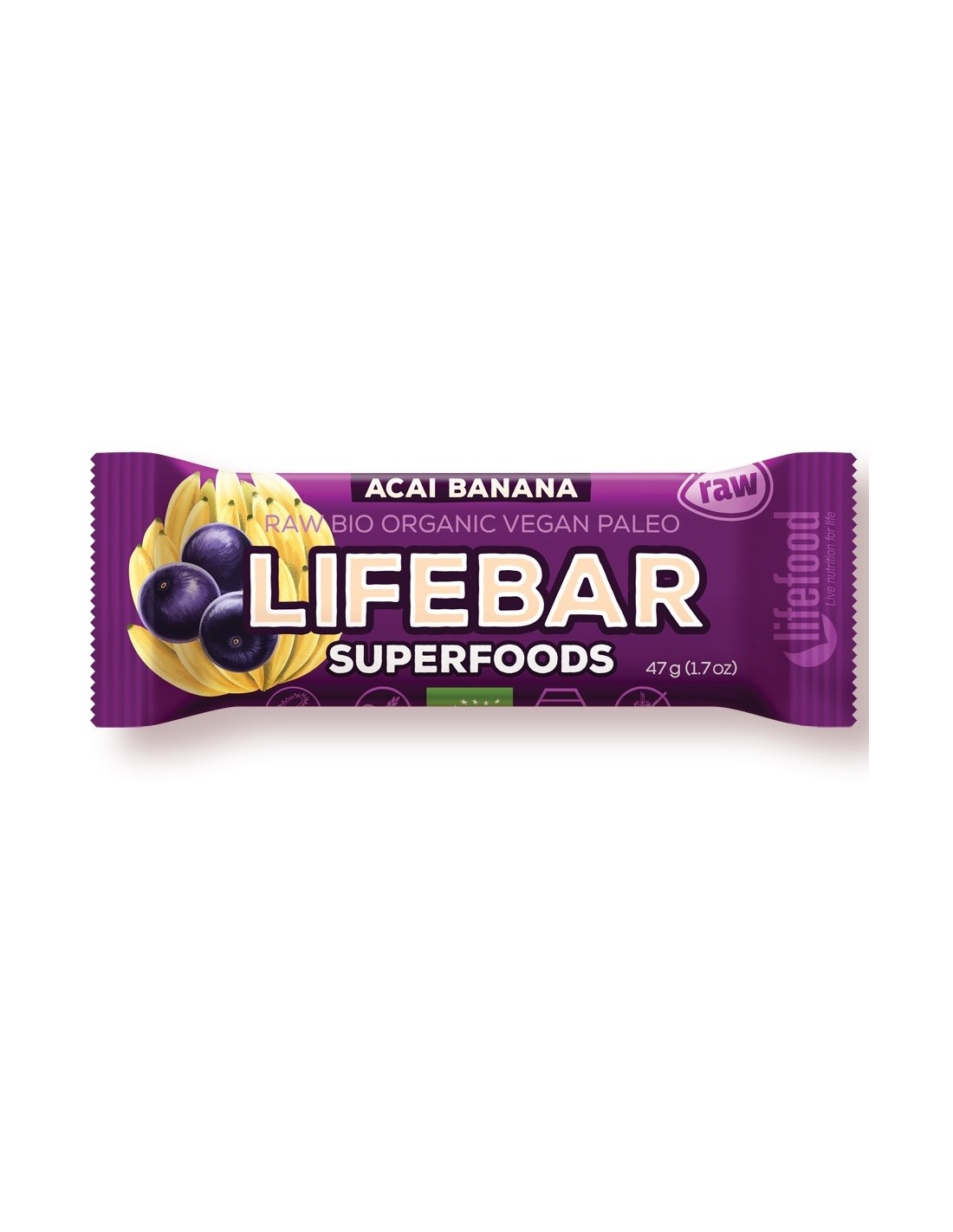 (daktyle*, suszone banany* (11%), sproszkowane liofilizowane jagody acai* (6%),
