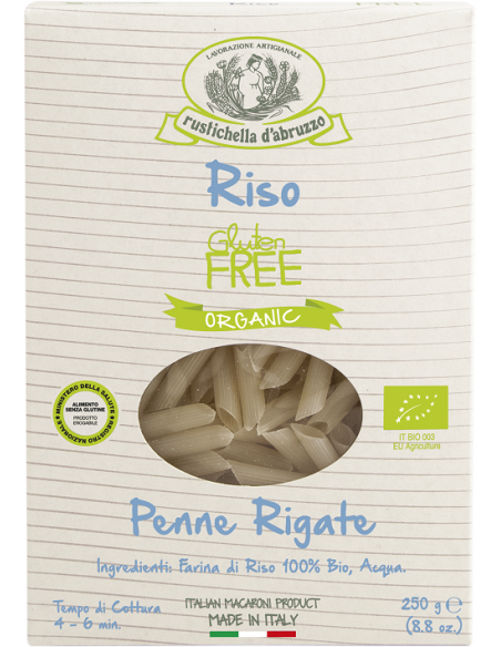 Makaron Penne wykonany wyłącznie w 100% z ekologicznej mąki ryżowej. Nazwa kształtu Penne pochodzi od słowa „pennino” (pióro wieczne). Ta wersja popularnego makaronu jest idealna dla osób, które potrzebują jedzenia bezglutenowego ale jednocześnie nie chcą rezygnować z dobrej kuchni.