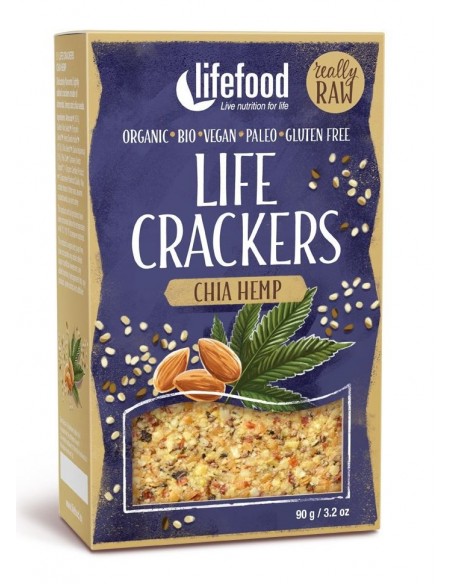 KRAKERSY Z MIGDAŁAMI, NASIONAMI KONOPI I CHIA RAW BEZGLUTENOWE BIO 90 g - LIFEFOOD