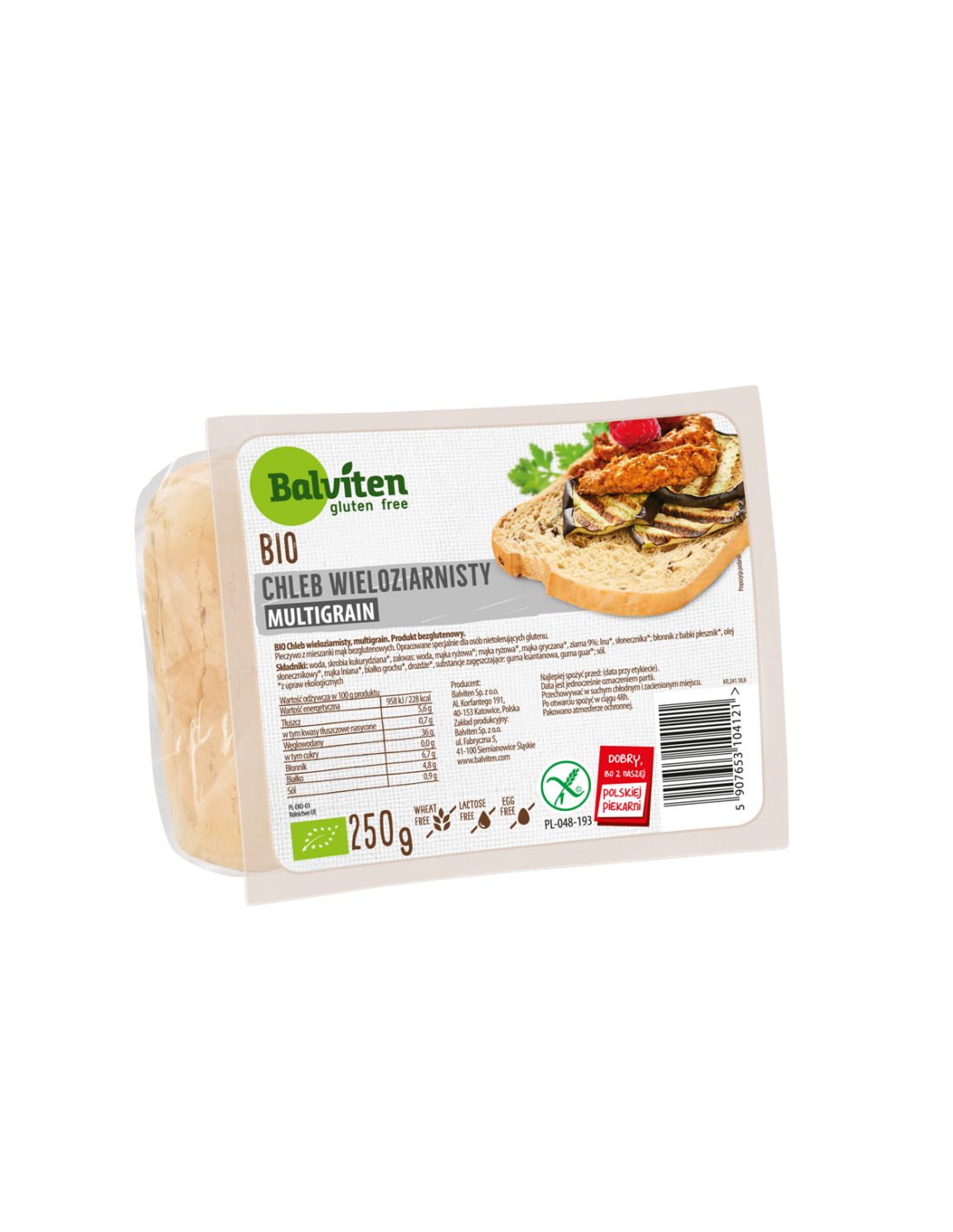 wieloziarnisty, bez mleka oraz jajek. Pakowano w atmosferze ochronnej.