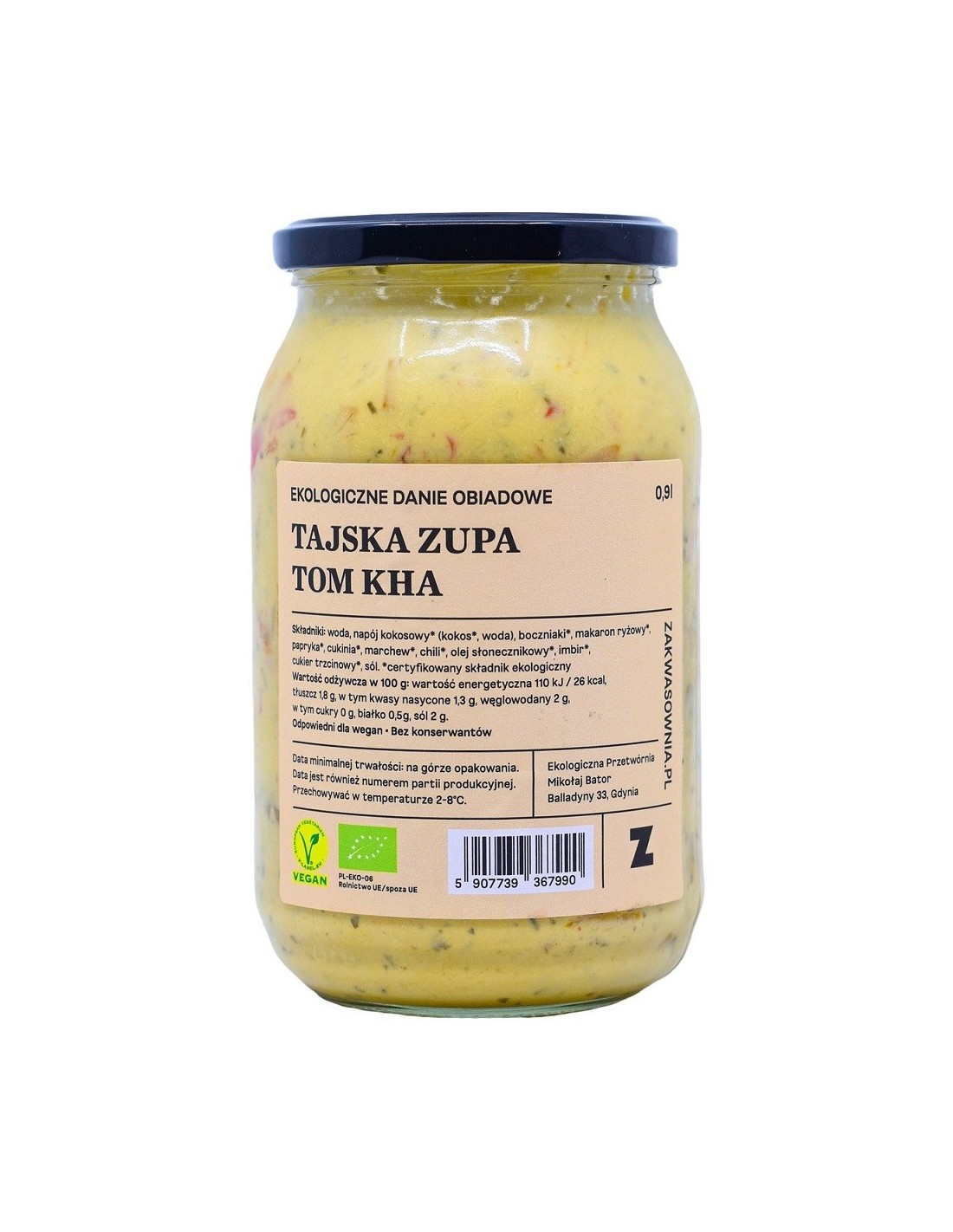 imbir*, boczniaki*, marchew*, papryka*, cukinia*, napój kokosowy*, olej*, sól, makaron ryżowy*, woda (* certyfikowany składnik ekologiczny)