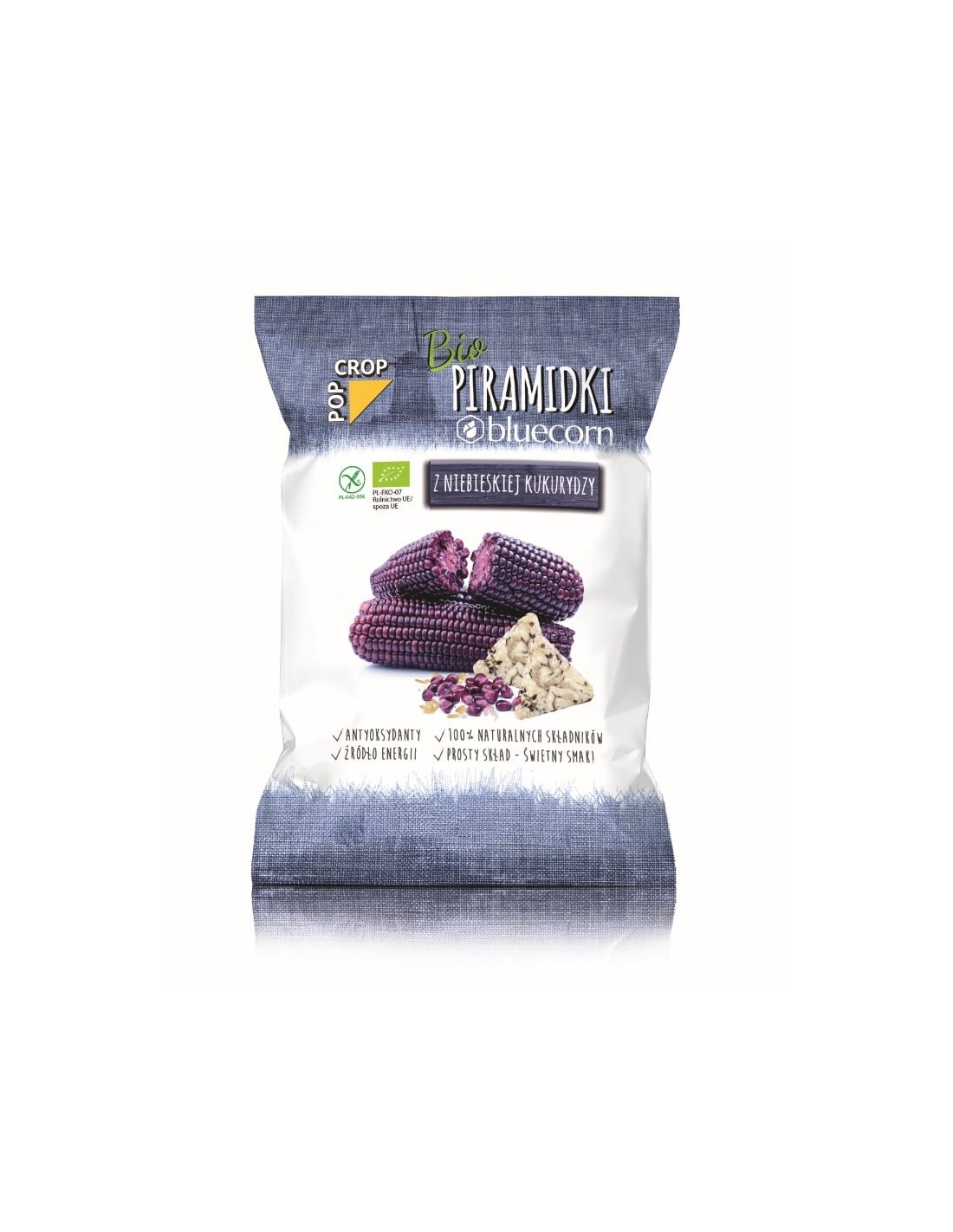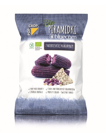 CHRUPKI PIRAMIDKI Z NIEBIESKIEJ KUKURYDZY, RYŻU BRĄZOWEGO Z SOLĄ HIMALAJSKĄ BEZGLUTENOWE BIO 80 g - POPCROP