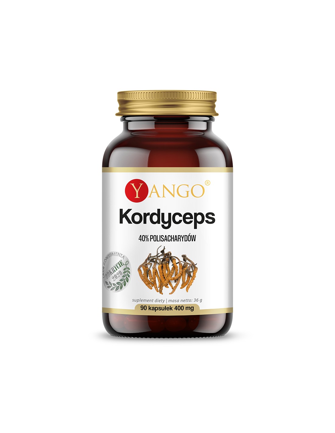 Składniki: ekstrakt z grzyba Kordyceps standaryzowany na 40% zawartości polisacharydów; otoczka kapsułki: celuloza roślinna.