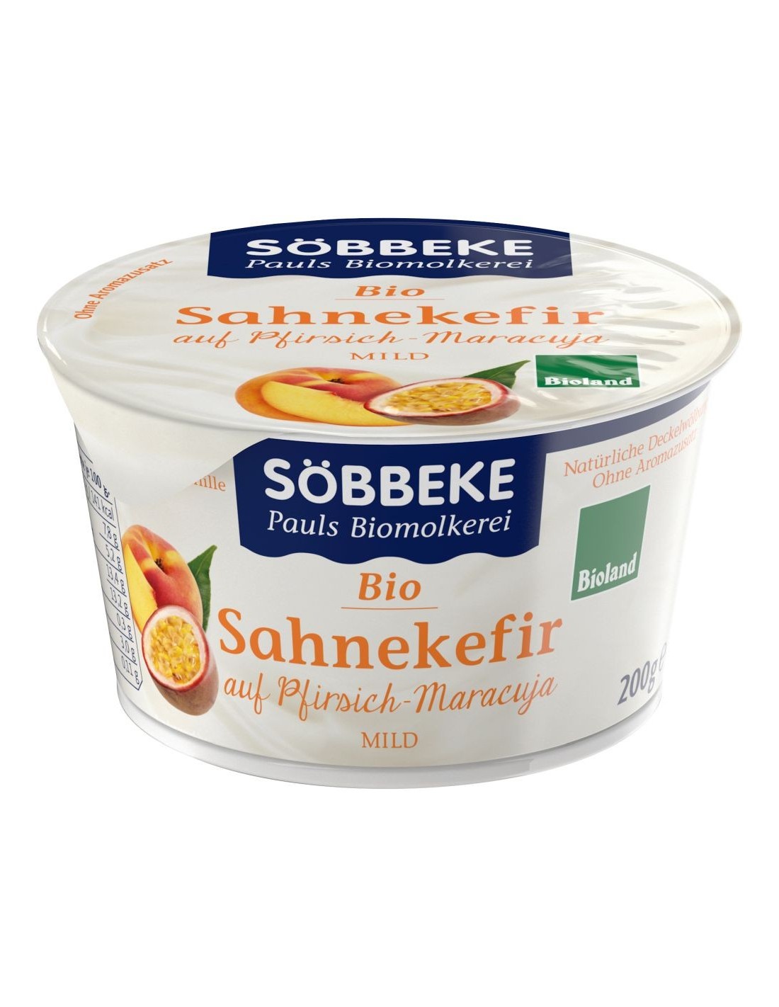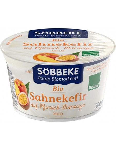 kefir śmietankowy*, surowy cukier trzcinowy*, brzoskwinie* (8%), sok z marakui* (1,5%), skrobia*, substancje zagęszczające: mączka chleba świętojańskiego* i pektyna*, koncentrat soku z cytryny* (*certyfikowany składnik ekologiczny)