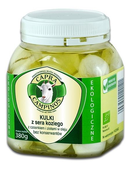 KOZI SER - KULKI Z CZOSNKIEM I ZIOŁAMI W OLEJU BIO 380 g - CAPRA CAMPINOS