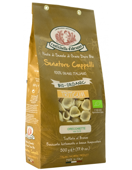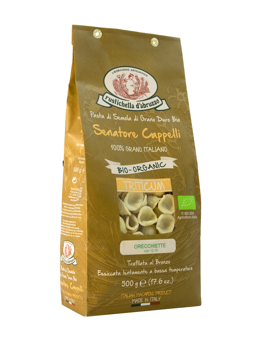 Makaron Orecchiette, pochodzący z regionu Apulii o kształcie kopuły. Wykonany wyłącznie z organicznej semoliny z pszenicy durum „Senatore Cappelli” oraz górskiej wody. Pszenica ta jest uznawana za „najpiękniejszą pszenicę durum, jaką kiedykolwiek uprawiano”. Ze względu na wysoką zawartość białka była nazywana „mięsem dla ubogich”.