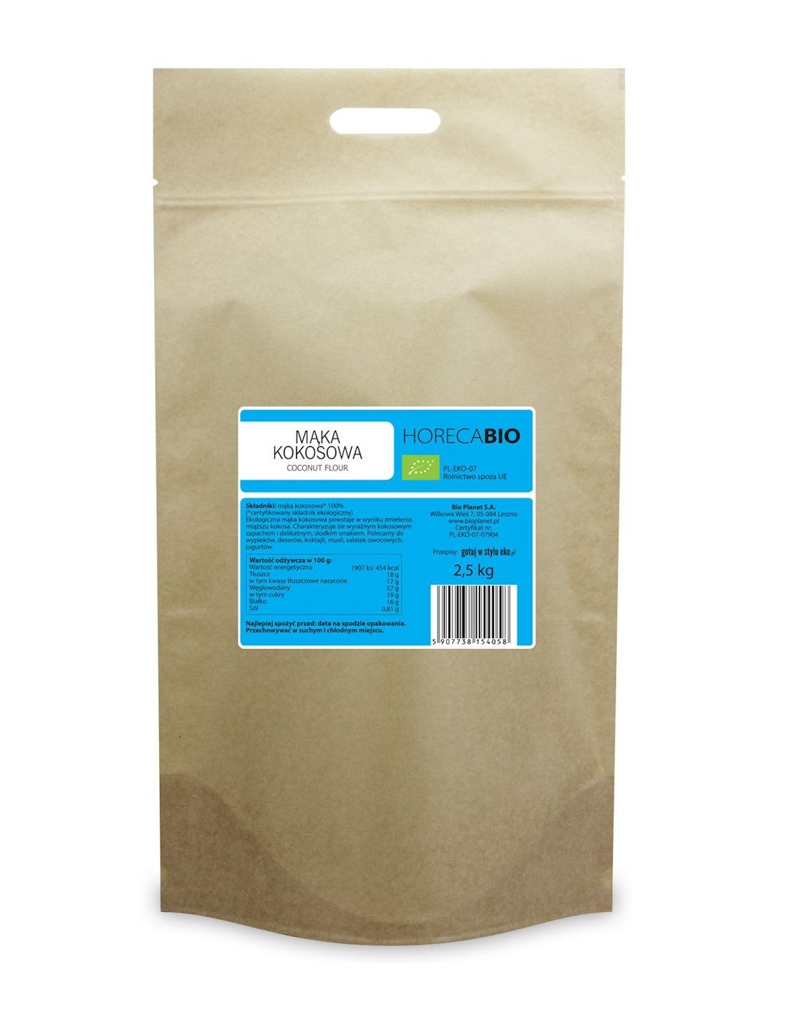 mąka kokosowa* 100% (*certyfikowany składnik ekologiczny)