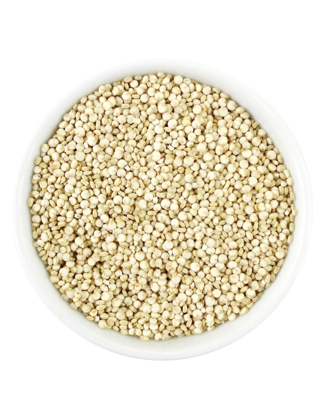 Ekologiczna quinoa biała, znana również jako komosa ryżowa. Z powodzeniem zastępuje tradycyjne kasze lub makarony. Doskonale sprawdza się jako składnik zup oraz dodatek do warzyw, sosów, wypieków, a także deserów.