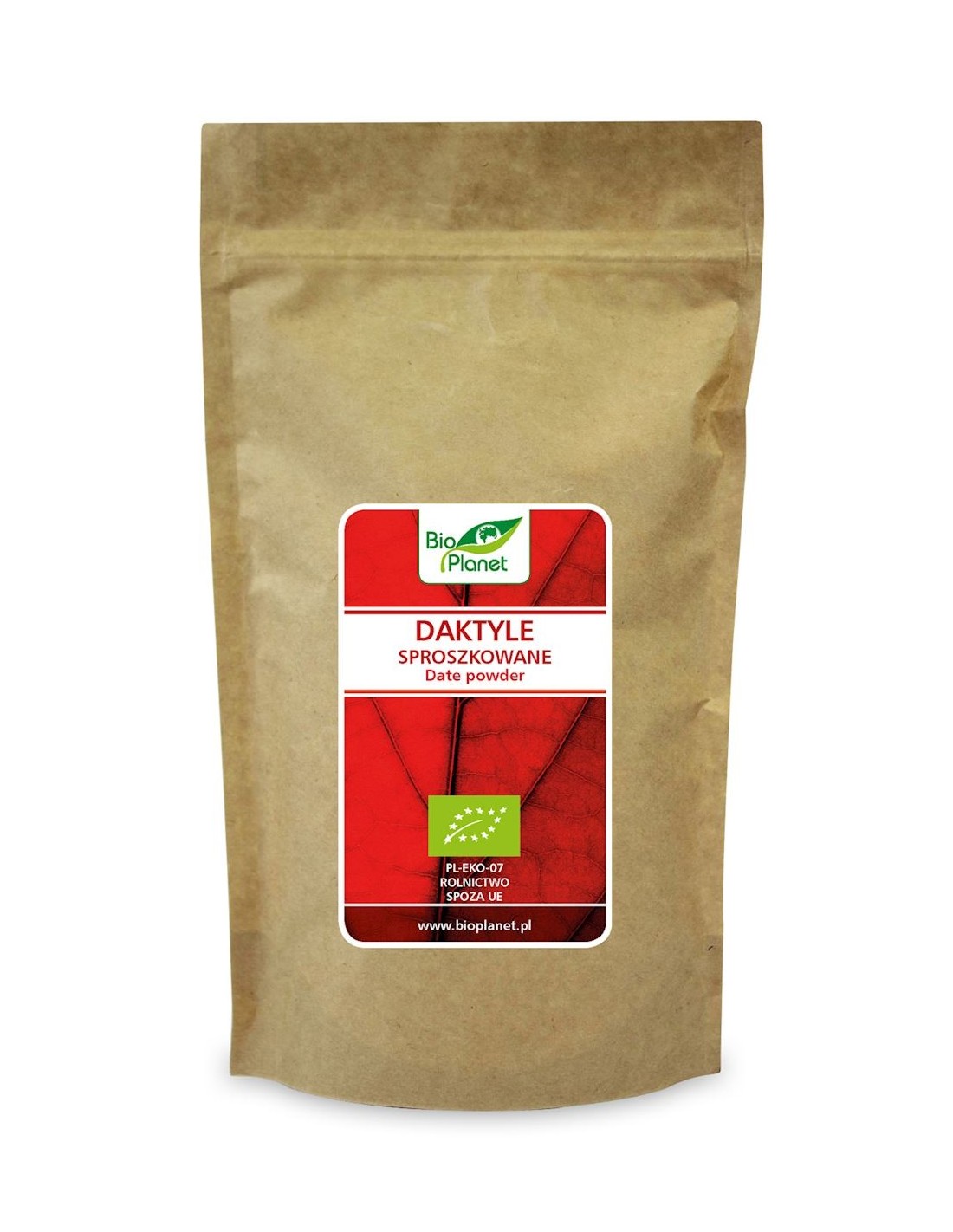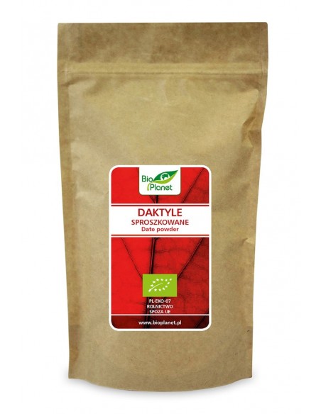 Ekologiczne daktyle w formie sproszkowanej charakteryzują się lekko słodkim smakiem z nutką toffi. Nadają słodyczy każdej potrawie, dzięki temu stanowią idealny dodatek do wypieków, deserów, jogurtów, musli, a także dań orientalnych. Nie rozpuszczają się w zimnych i ciepłych napojach.