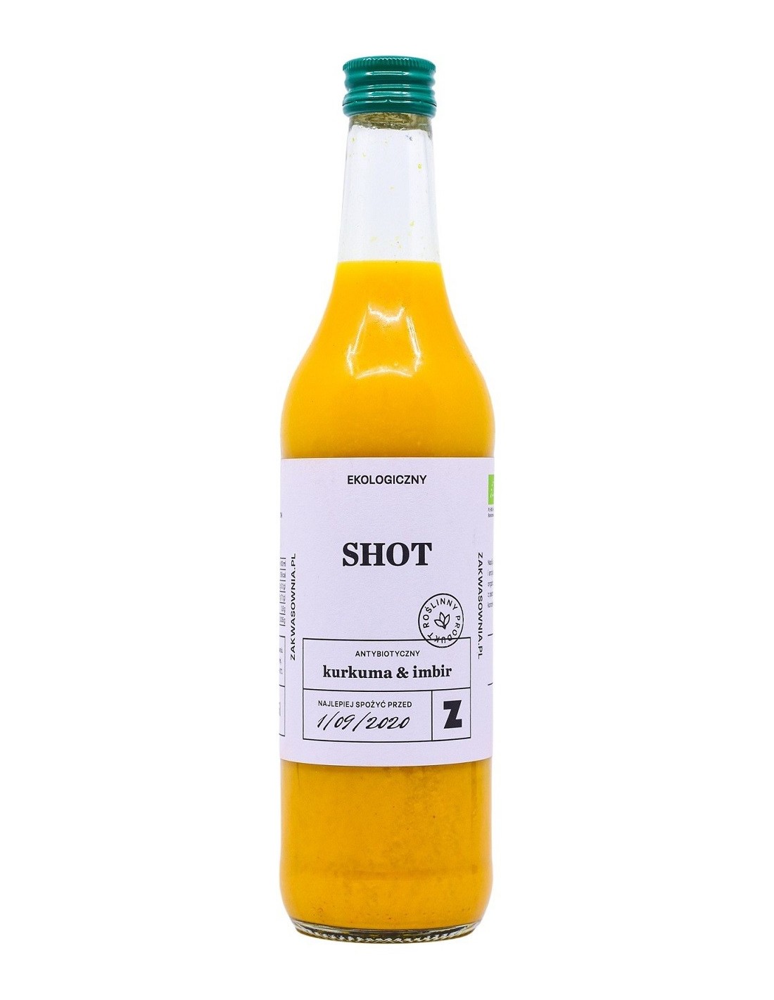 Produkt niepasteryzowany. Rozgrzewający napój na bazie świeżo tłoczonych soków z korzenia imbiru i kurkumy. Dodatek oleju z oregano wzmacnia smak.