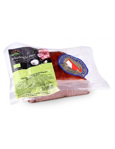 mięso wieprzowe* (do wyprodukowania 100 g produktu użyto 105,3 g szynki wieprzowej), cukier trzcinowy*, sól niejodowana, przyprawy*, substancja konserwująca: azotyn sodu (*certyfikowany składnik ekologiczny)