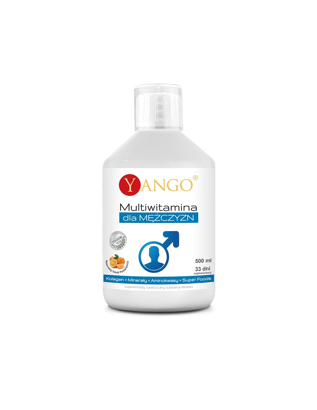 Informacja: Nie stosować u osób mających predyspozycję do tworzenia kamieni nerkowych lub chorujących na kamicę nerkową. W związku z zawartością witaminy D, przed zastosowaniem wskazane jest wykonanie badania 25-(OH)D we krwi oraz konsultacja wyniku badania z lekarzem lub farmaceutą. Suplement diety nie może być stosowany jako substytut zróżnicowanej diety i zdrowego trybu życia. Przechowywać w ciemnym i suchym miejscu w temperaturze pokojowej, w sposób niedostępny dla małych dzieci. Osoby przyjmujące leki przed użyciem powinny skonsultować się z lekarzem lub farmaceutą. Niewskazane małym dzieciom, kobietom w ciąży oraz karmiącym. Wyprodukowano w Unii Europejskiej. Podmiot odpowiedzialny: YANGO Sp. z o.o. Objętość netto: 500 ml.